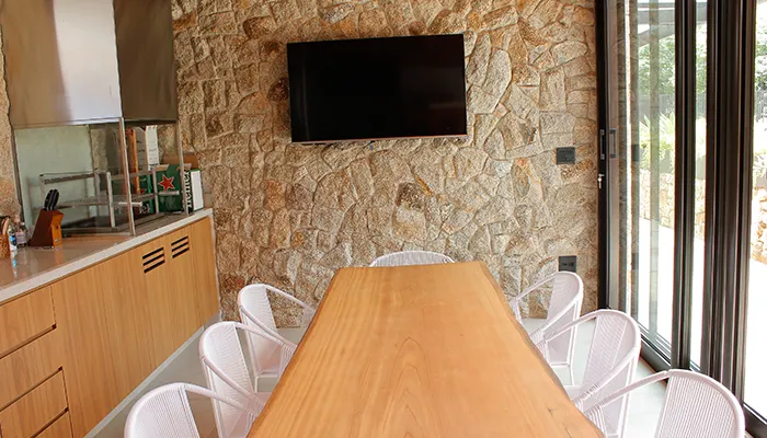 Muito utilizada para revestimento de muros, fachadas e montagem de cascatas, porém, também pode ser utilizada para ambientes internos.