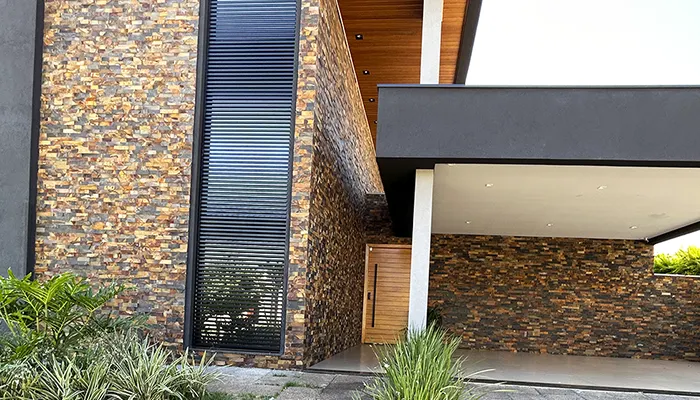 É um material bastante resistente, podendo ser colocada em áreas internas e externas deixando um ar sofisticado. A pedra ferro tem sua coloração natural preta com ferrugem ou selecionada apenas preta.